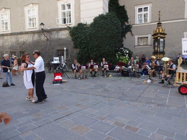 Das Langzeitprojekt 'Salzburger Straßenmusik', das das Salzburger VolksLiedWerk mit Unterstützung des Altstadtmarketing Salzburg veranstaltet, erfreut sich seit 2007 großer Beliebtheit. Die Irrsberg Musi spielte am 02. August 2014 von 10.30 -13.30 h bei bestem Wetter am Kajetanerplatz in der Salzburger Altstadt auf. Herzlichen Dank an Rositha Burits und Heidi Stumtner für die perfekte Organisation. Ein besonderer Dank geht an Fritz Schwärz für die umsichtige Betreuung mit Getränken und die nette Moderation.